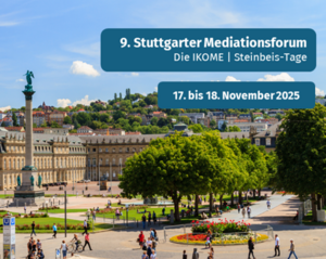 Mit großer Vorfreude veranstalten wir auch dieses Jahr das 9. Stuttgarter Mediationsforum – Die IKOME | Steinbeis-Tage. Am 17. und 18. November 2025 treffen sich wieder Mediator*innen, Supervisor*innen, Führungskräfte, Anwälte, Pädagog*innen, Personaler*innen und viele mehr im Steinbeis-Haus in Stuttgart zum Erlernen neuen Wissens, zum beruflichen Austausch und geselligem Beisammensein.