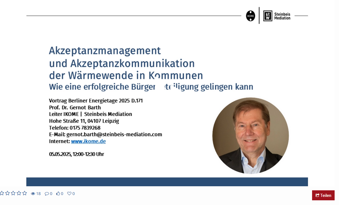Die Energiewende in Sachsen stellt Kommunen vor große Herausforderungen. Der Ausbau erneuerbarer Energien, die kommunale Wärmeplanung und notwendige Infrastrukturmaßnahmen führen vielerorts zu intensiven Diskussionen und Konflikten. Es braucht gezielte Strategien, um sowohl Befürworter als auch Kritiker einzubeziehen und tragfähige Lösungen vor Ort zu entwickeln.