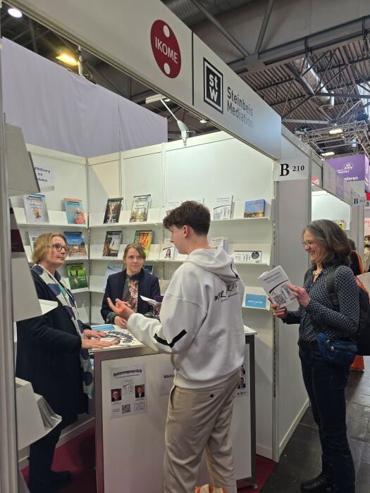 Nicht nur das Fachmagazin DIE MEDIATION und die Neuerscheinungen zog neugierige Besucherinnen und Besucher an unseren Stand, sondern auch unser Aus- und Weiterbildungsangebot. Vor allem unsere Basisausbildung zum Zertifizierten Mediator (m/w/d) wurden besonders interessiert wahrgenommen. Aber auch unsere Kooperation mit dem Heimatgenuss‑Verein und dessen Weinrouten‑Flyer, der Ideen vermittelte, was sich nach Messe‑ oder Kursbesuch in der Region entdecken lässt, gab viel Gesprächsanlass. Die gute Mischung aus Lesungen zu den Neuerscheinungen, das Standsortiment zu Die Mediation und unseren Kursen sowie die zusätzlichen Informationsangebote wurde gern angenommen und vielfach gelobt.