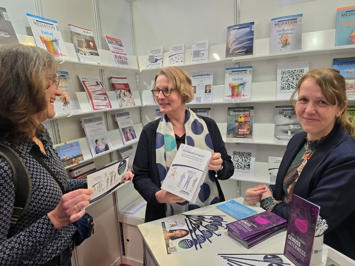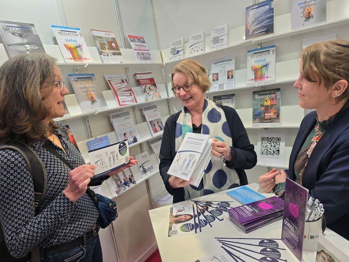 Sehr viel Zuspruch erhielt „Die Mediation – Das Magazin für Kommunikationsprofis“, das sowohl langjährige Leserinnen und Leser als auch neue Interessierte anzog. Ebenso überzeugten die aktuellen Neuerscheinungen aus der Schriftenreihe des Fachmagazins „Die Steinzeit ist vorbei“ von Dr. Reiner Ponschab und Adrian Schweizer sowie „Yavie – wohin gehst du?“ von u.a. Prof. Dr. Stephan Buchhester und Seeda Ahmad-Kreuzer. Die Veröffentlichungen gaben vielfach Anlass für vertiefende Diskussionen.